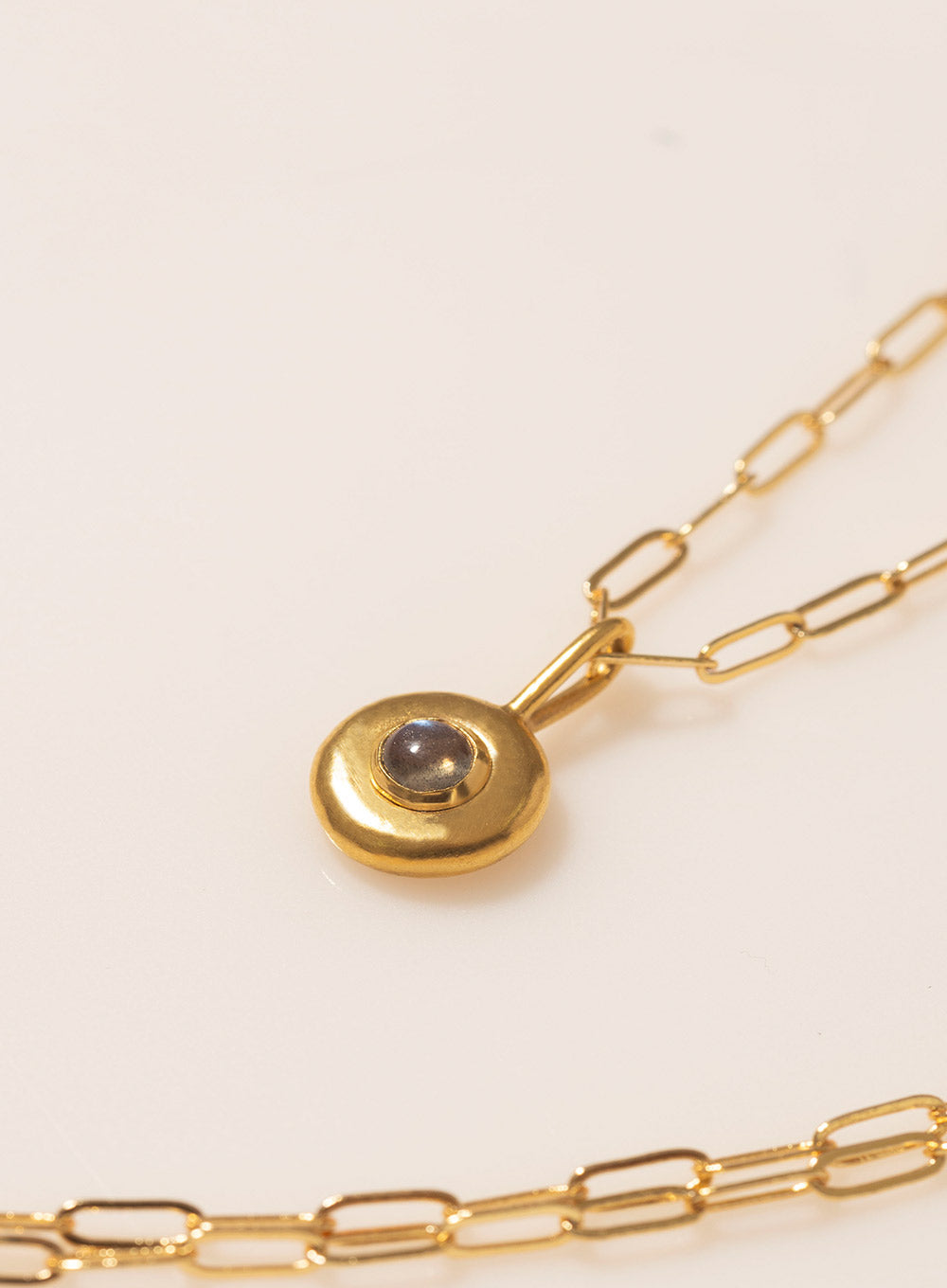 Material: Piedra redonda 4.5mm , montada en un dije de plata 950. con baño en oro.
